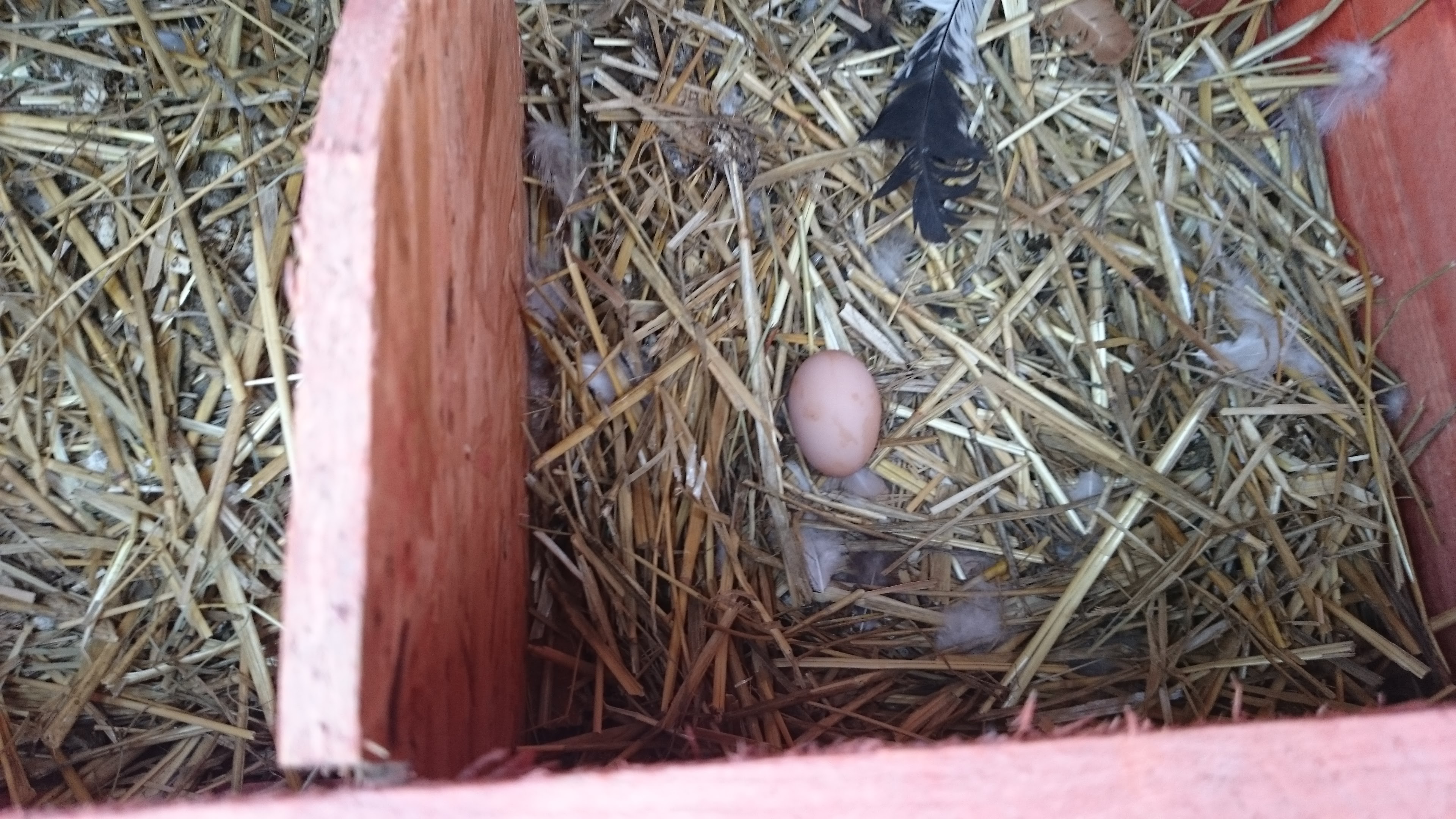 Jest, jest, wreszcie jest pierwsze jajo :-). Spodziewałem się je co prawda za około jeden-dwa tygodnie ale widocznie kurą jest tak dobrze, że odwdzięczyły się szybszą produkcją ;-).
